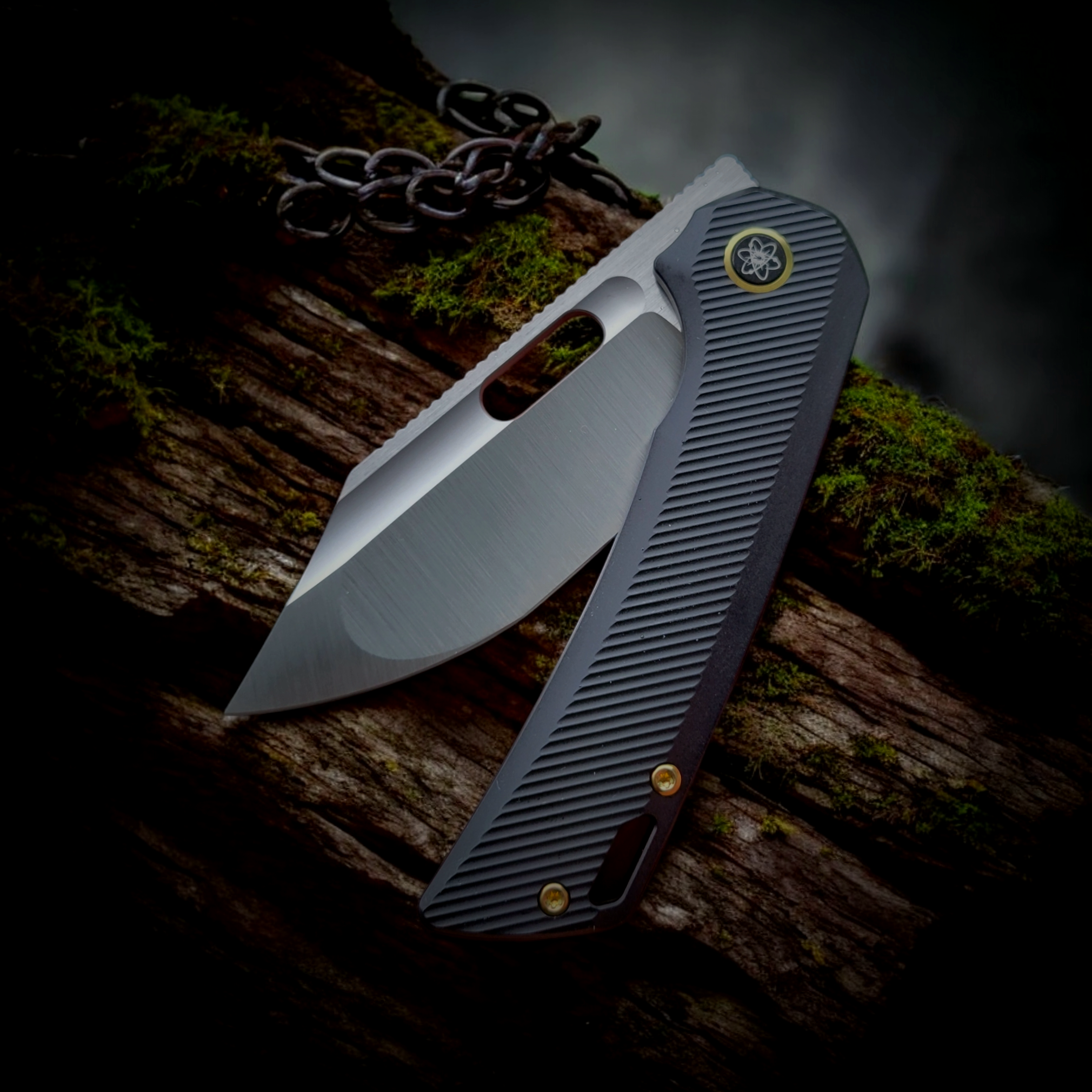 As an avid collector I am always striving to improve my design skills and bring fresh ideas to life. The Relative is my take on an aggressive modified Tanto / Bowie style folder. From its milled texture to it's compound gound Magnacut, the Relative is striking in form, and rugged in function. Weather you are opening your Amazon delivery, or out in the wilds of the world, the Relative will elevate your EDC.