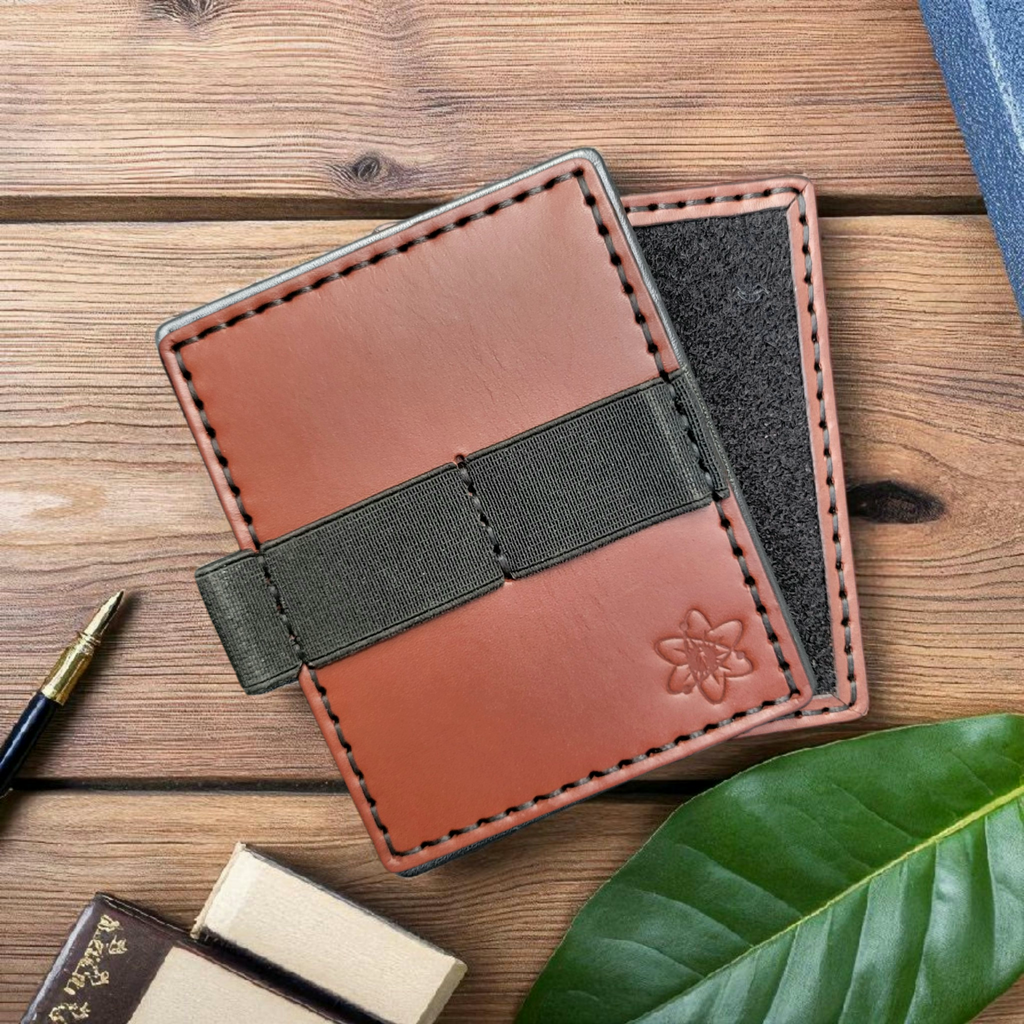 This Hand Made bit of awesome holds gear, patches, cards and cash. Made from high quality leather, one face features velcro loops for patches, the reverse elastic loops for gear. In the middle is a central pocket for cards, cash, or other fun stuff like coins ect that has a Loop & Hook seal to keep you valuables safe inside.